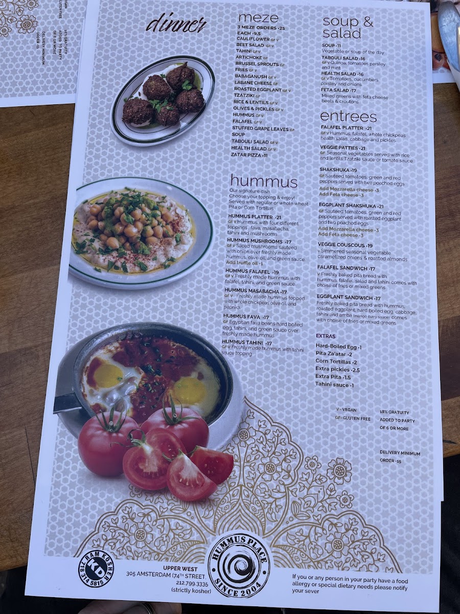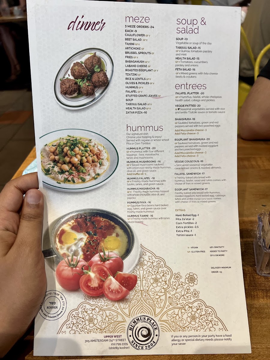 Welcome to Hummus Place, an oasis for those craving fresh Mediterranean flavors in the heart of New York City. Located at 305 Amsterdam Ave, this cozy spot delights guests with its authentic offerings. The star of the menu is undoubtedly the hummus, celebrated for its creamy texture and generous portions. Customers rave about the falafel and the heavenly pita bread, often described as the freshest they’ve ever tasted.